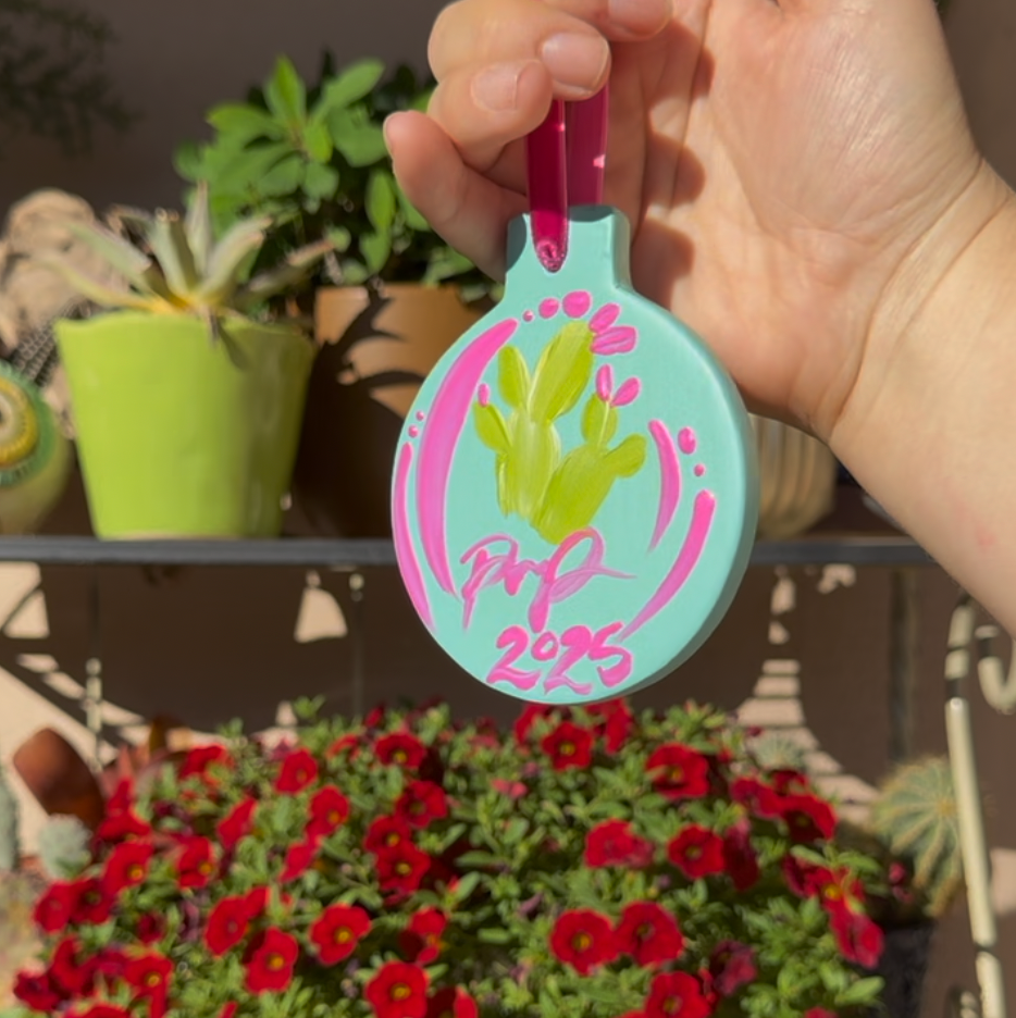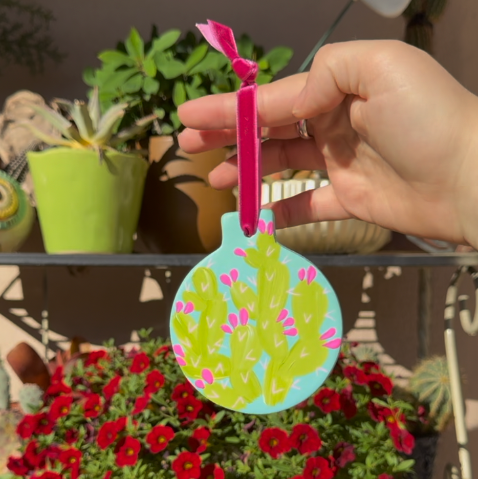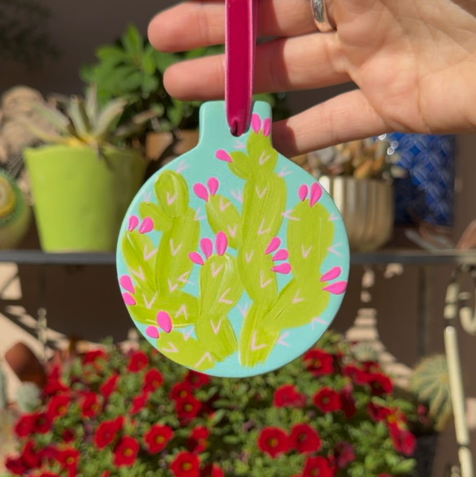 "Prickly Pear Avenue" Handpainted Ceramic Ornament