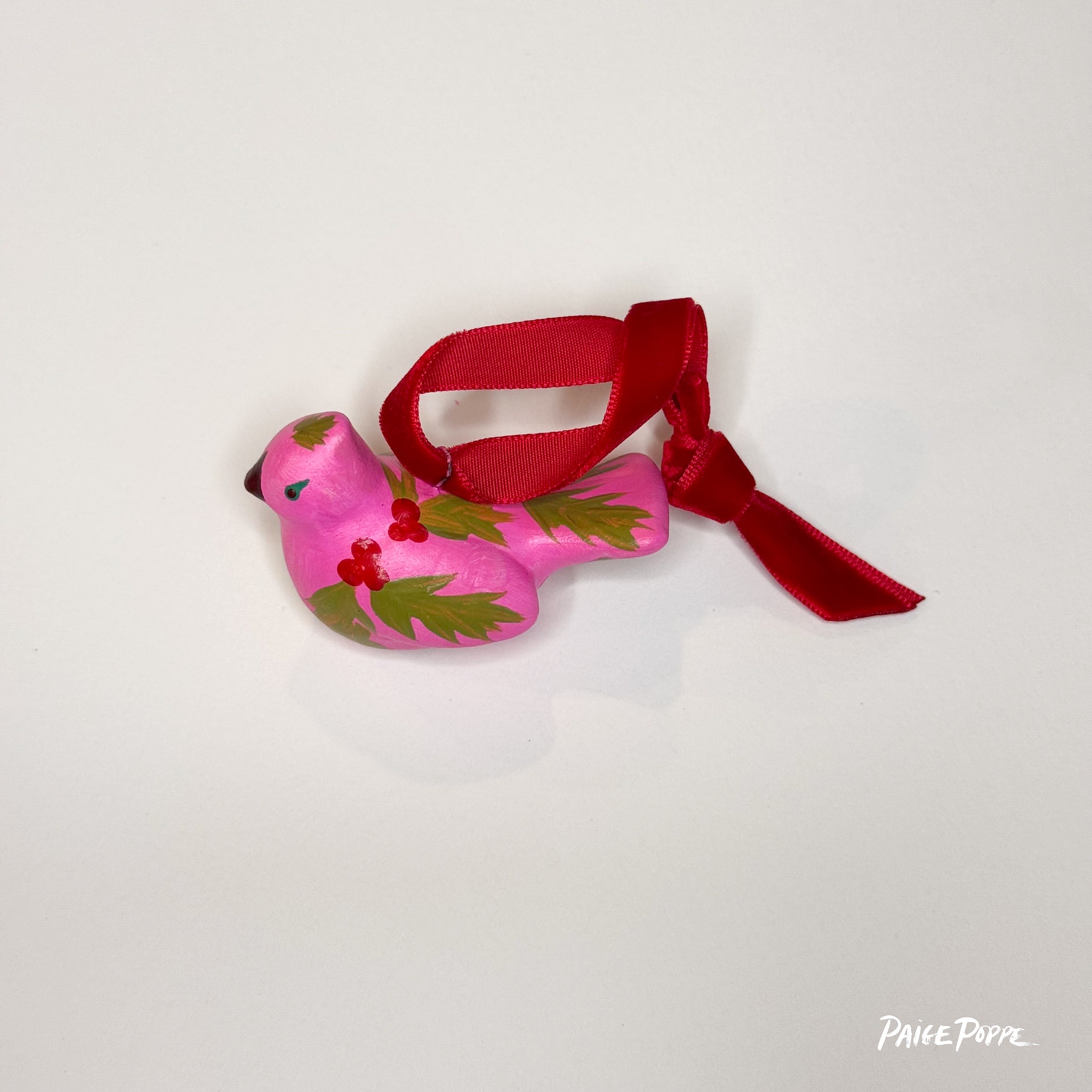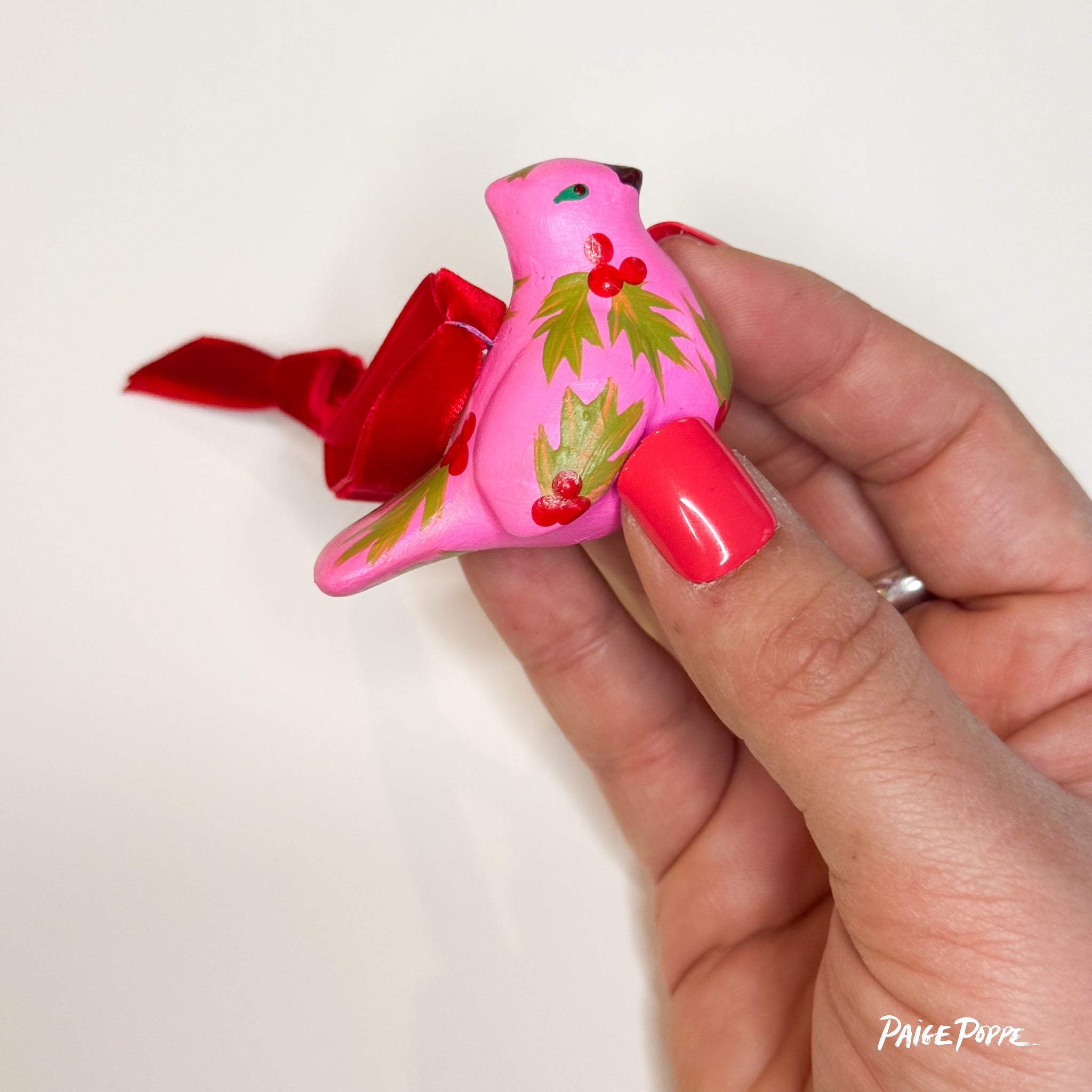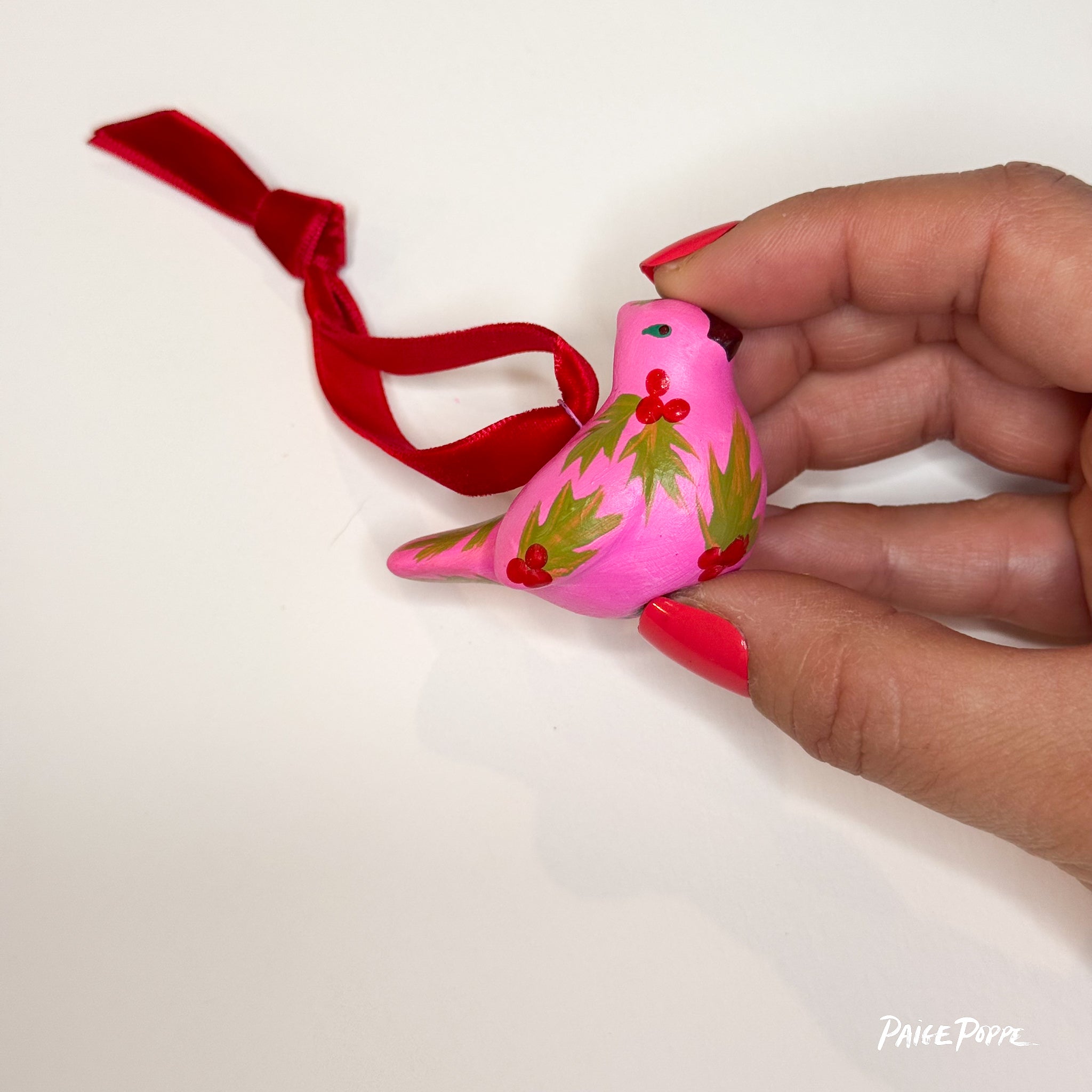 "Ruby Holly" Handpainted Ceramic Ornament