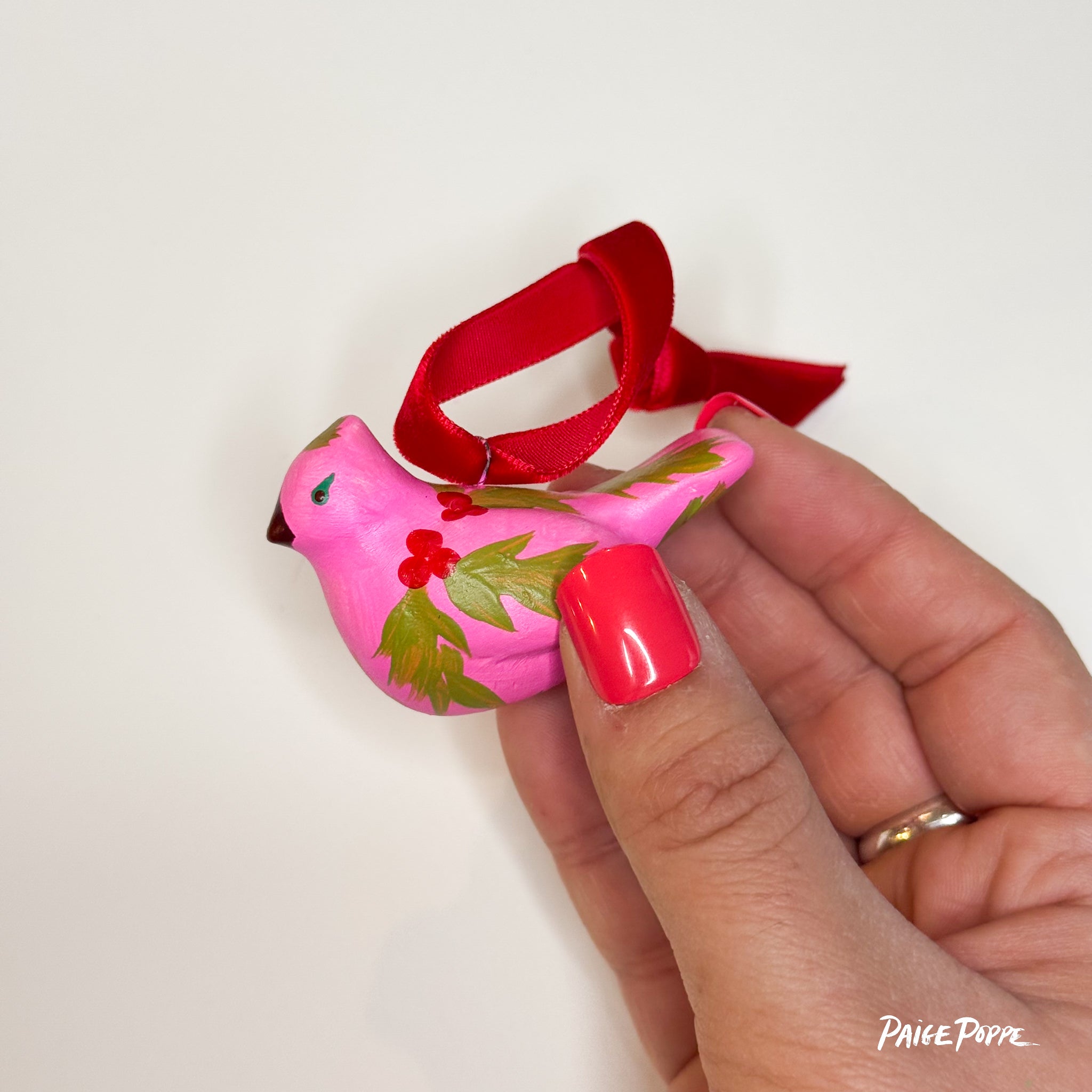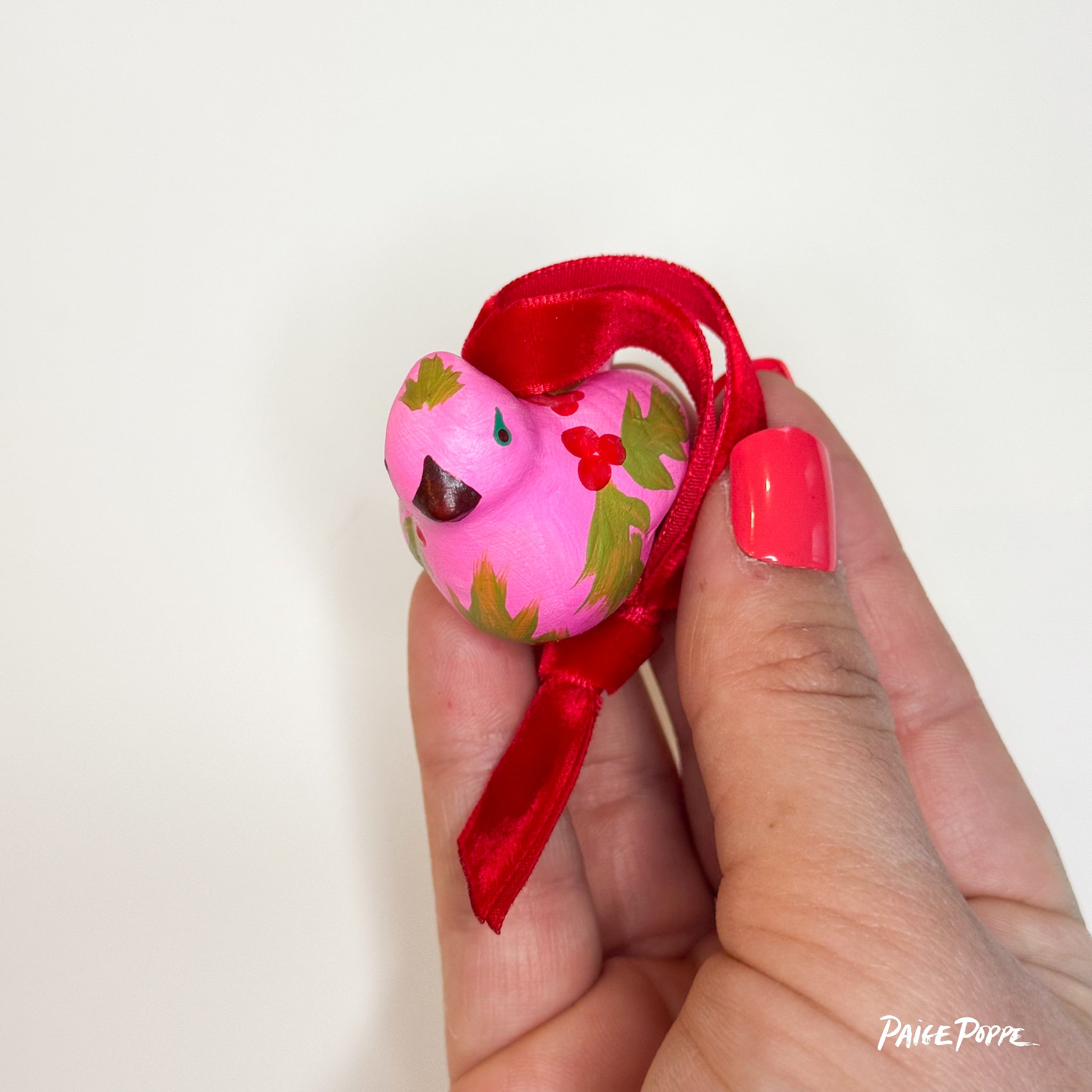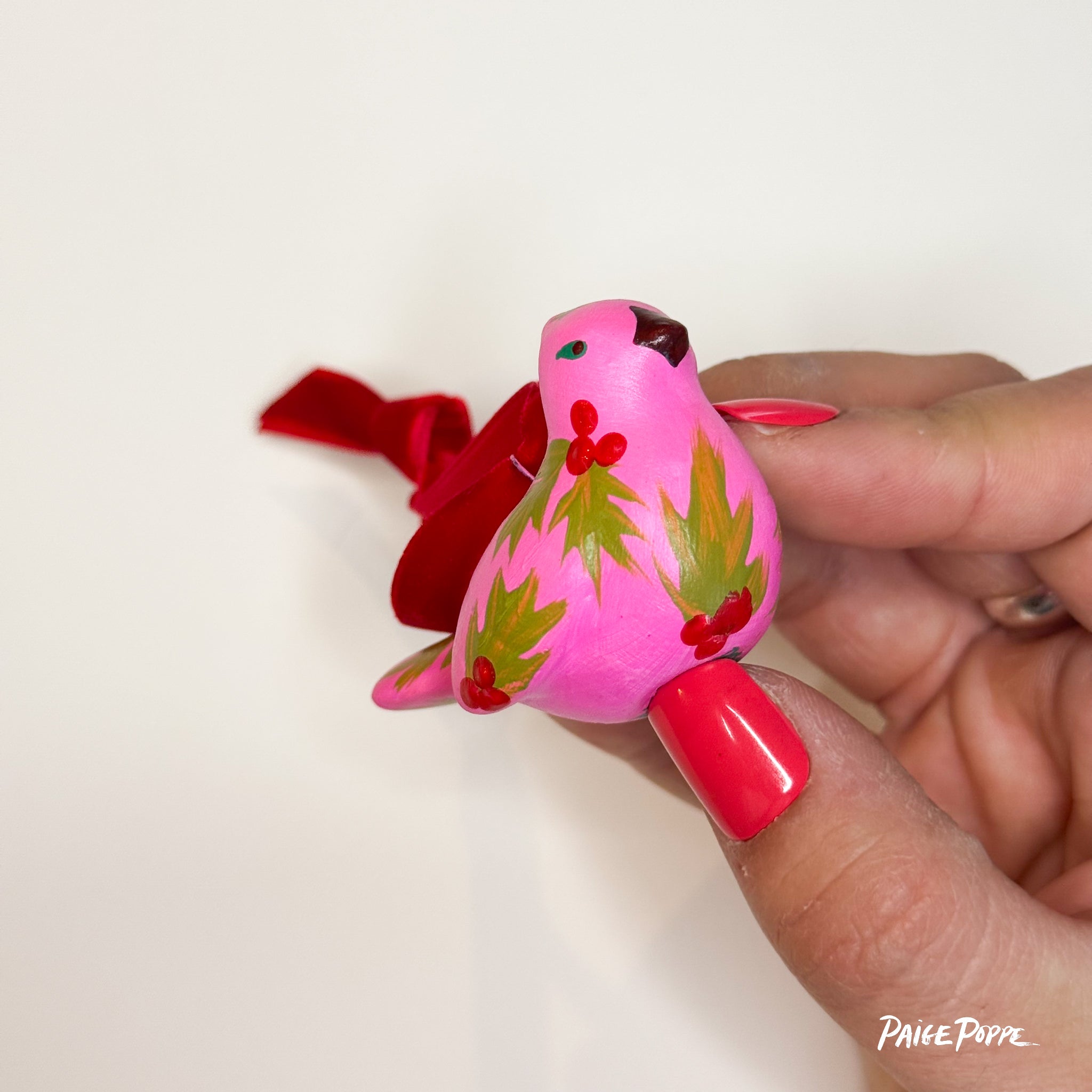 "Ruby Holly" Handpainted Ceramic Ornament